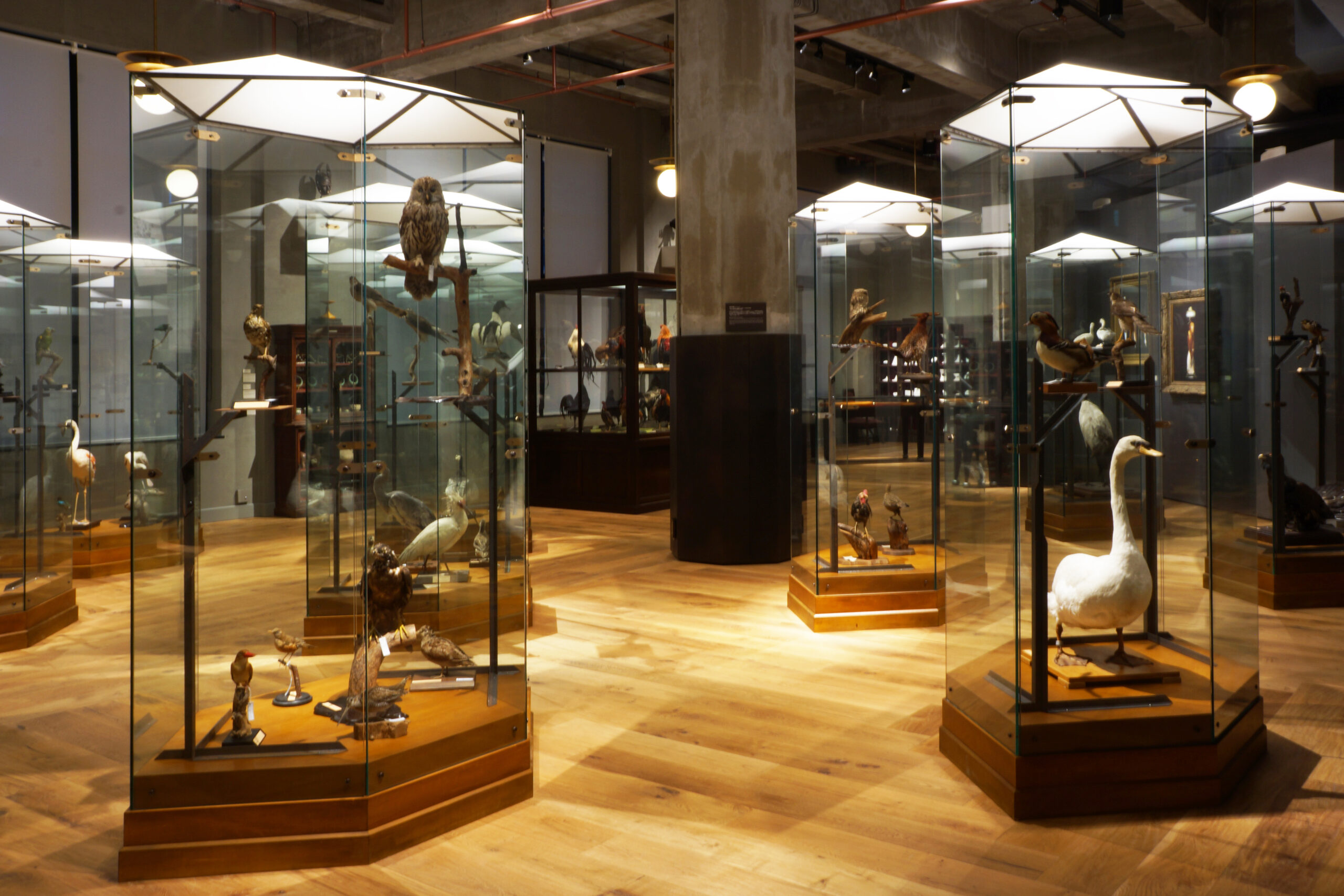 ガラス壁にずらりと並んだ鳥類の剥製コレクションも必見です。テーマや色、分類群などで並び方が変わるそうで、自然科学の美しさと、それを体系化しようとする人間の知的な営みの両方を感じられます。