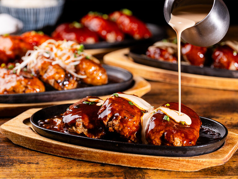運ばれてきた瞬間に、鉄板の上でほとばしる肉汁とこうばしい香りに心を掴まれます。ナイフを入れれば、赤身と脂身が絶妙なバランスで配合されたパティから、肉の旨味が洪水のように溢れ出す。きめ細やかな肉質は、まるでシルクのようになめらか。噛みしめるほどに、和牛特有の甘く、芳醇な香りが鼻腔をくすぐります。これは単なるハンバーグという料理ではなく、「和牛を味わい尽くすための一皿」と言えるでしょう。