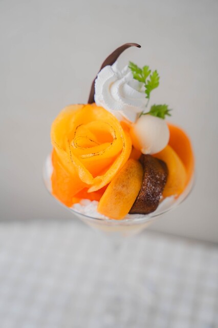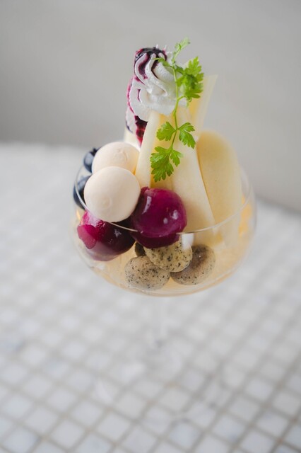 ウェブサイトを拝見すると、全国から厳選された国産フルーツを主役に、アイスクリームやソース、コンフィチュールに至るまで、そのすべてが手作りであるというこだわり。パフェグラスという小さな宇宙の中で、フルーツのポテンシャルを最大限に引き出すための緻密な設計がなされています。