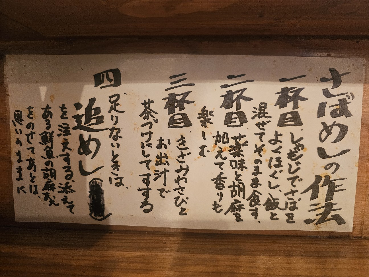 そして、この「さばめし」の真髄は、卓上に置かれた「さばめしの作法」にあります。