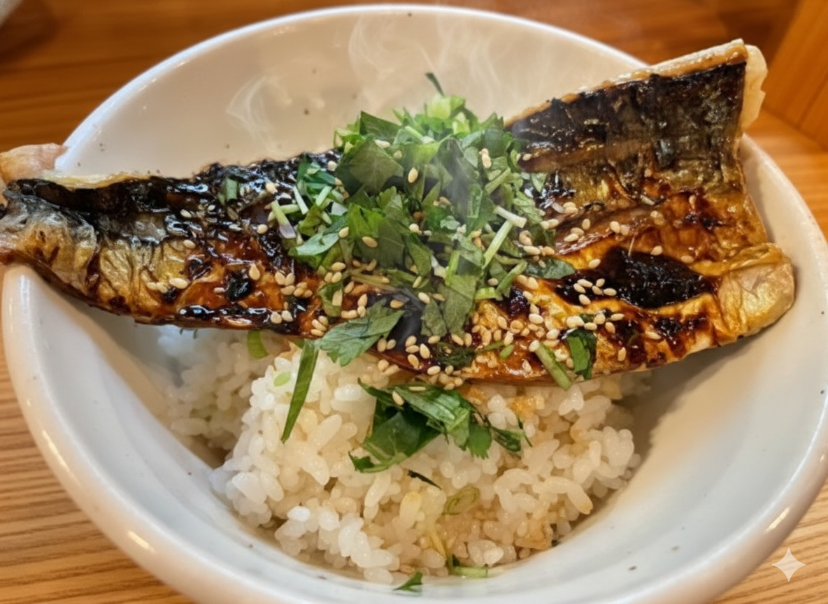 一見すると、焼き鯖をご飯に乗せただけという、非常にシンプルで大胆な料理。しかし、その裏には、一杯で四度美味しいという、食べ手を飽きさせない緻密な計算と構成が隠されています。