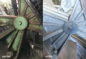 この工法を間近で見たことがありますが、その音や粉塵は凄まじいものがあります。そして何より、除去したサビや塗膜、そして使用した膨大な研削材が混ざり合った「産業廃棄物」が大量に発生してしまうのが、大きな課題でした。