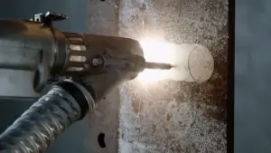 まるでSFの世界から出てきたような、レーザー光を使ったクリーニング技術。世界最高峰の高出力レーザーを照射し、サビや塗膜だけを瞬間的に「蒸散・熱破砕」させるのです。